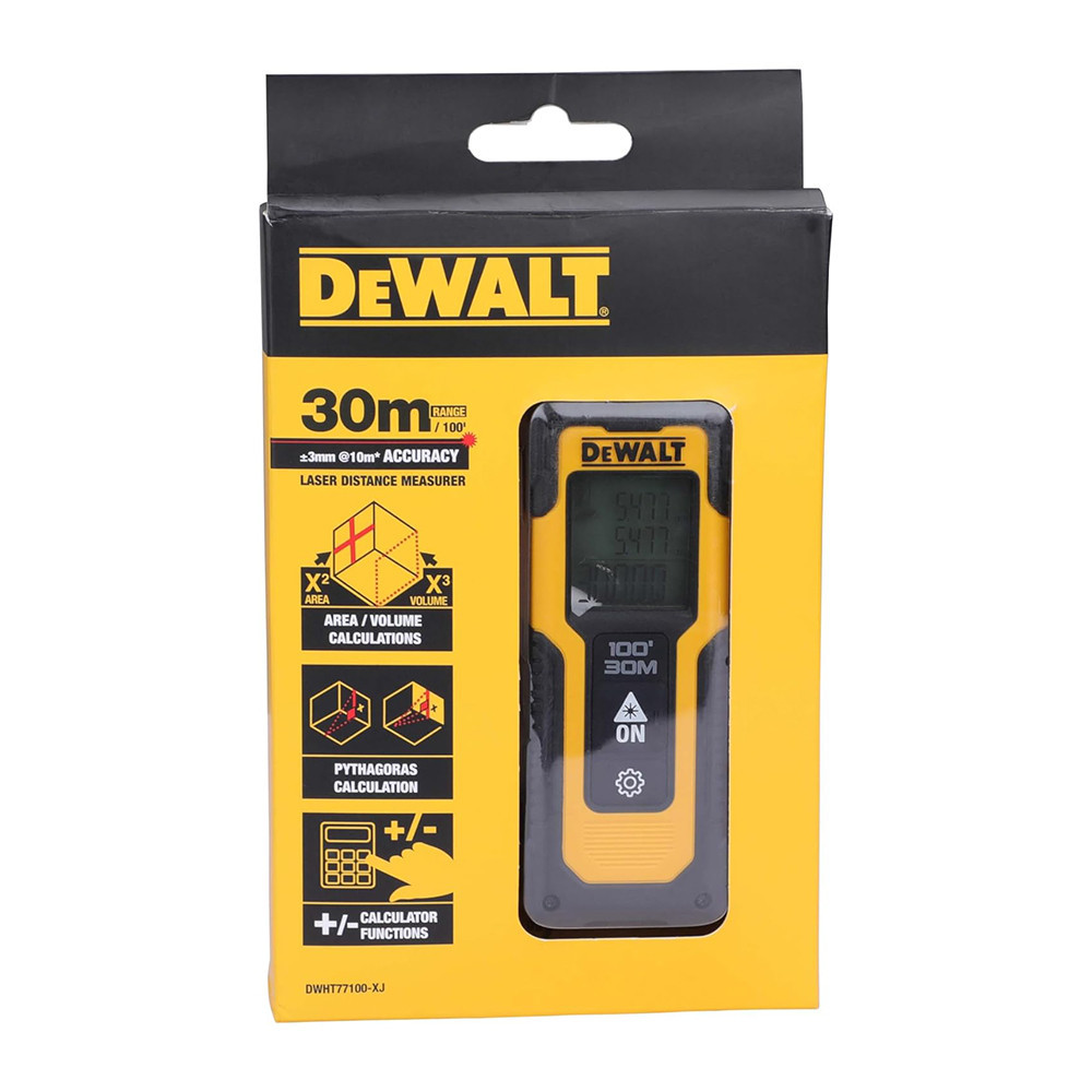 DeWalt DWHT77100-XJ lézeres távolságmérő két gombnyomásos méréssel az egyszerű használatért.