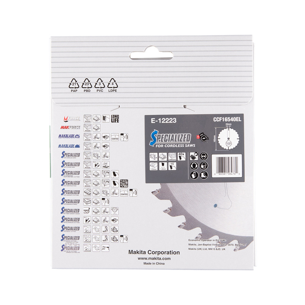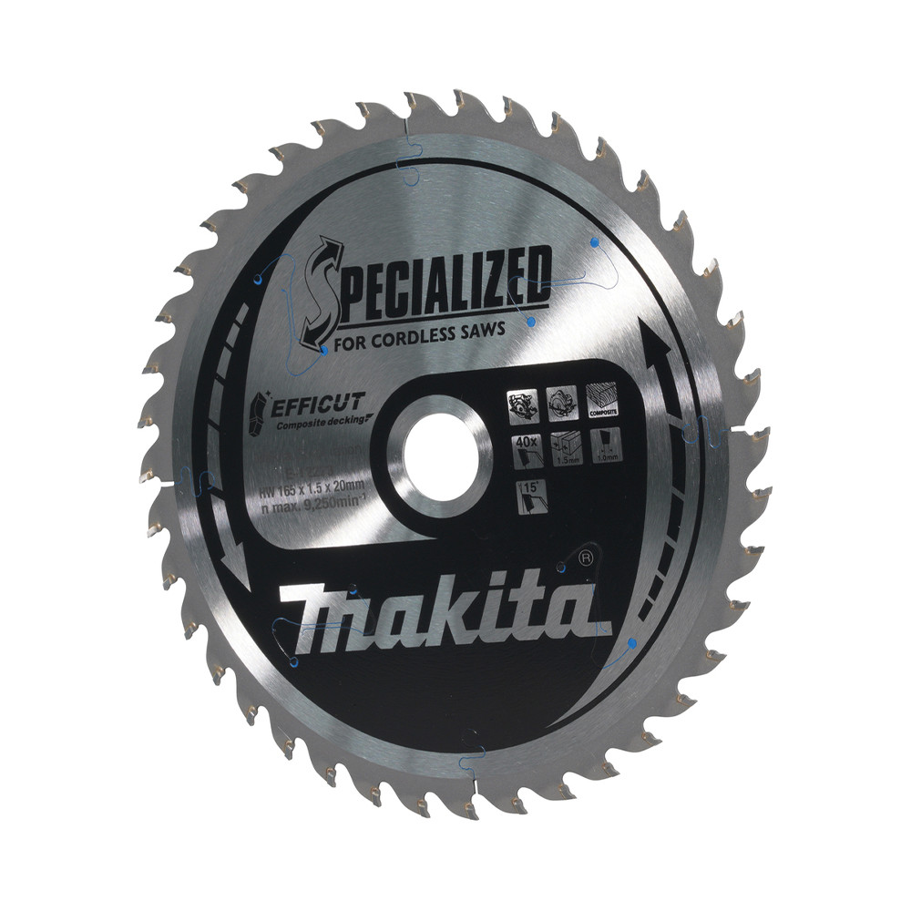 Makita EFFICUT körfűrészlap akkus géppel, kompozithoz 165x20x1,5mm 40 fog