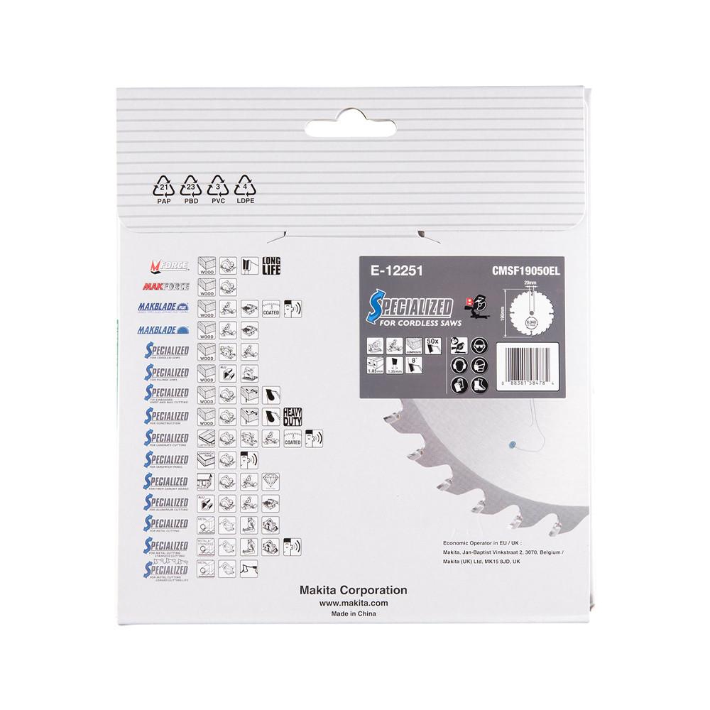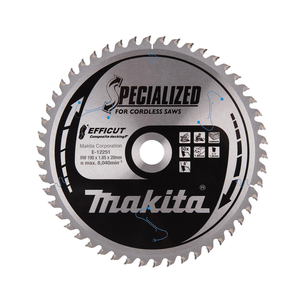 Makita EFFICUT körfűrészlap akkus géppel, kompozithoz 190x20x1,85mm 50 fog