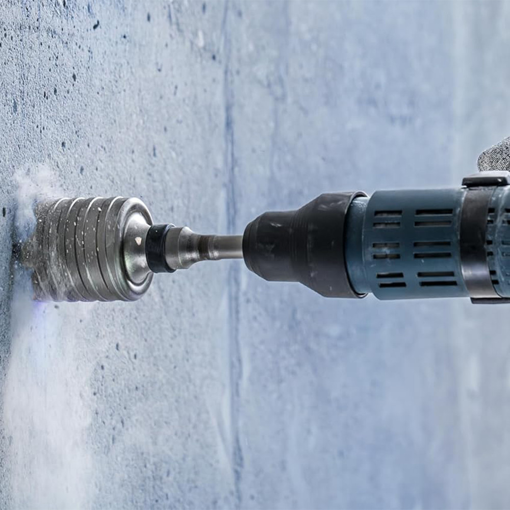 A PRO SDS max-5 Core Cutter erős keményfém fogakat használ a kivételes előrehaladás és tartósság érdekében. A fogak aszimmetrikusak és alkalmazkodnak a fúrókorona átmérőjéhez, így könnyebben vághatsz vele ki mély, pontos lyukakat a kapcsolószekrények és csövek számára. A fúrókorona két forgácshornya hatékonyan távolítja el a port. Ez egy egyrészes tartozék, ami azt jelenti, hogy a géptől a fúrókoronáig maximális az erőátvitel. Az alábbi anyag(ok)hoz ajánlott: beton, beton falazóblokk, mész és homoktégla, tömör tégla