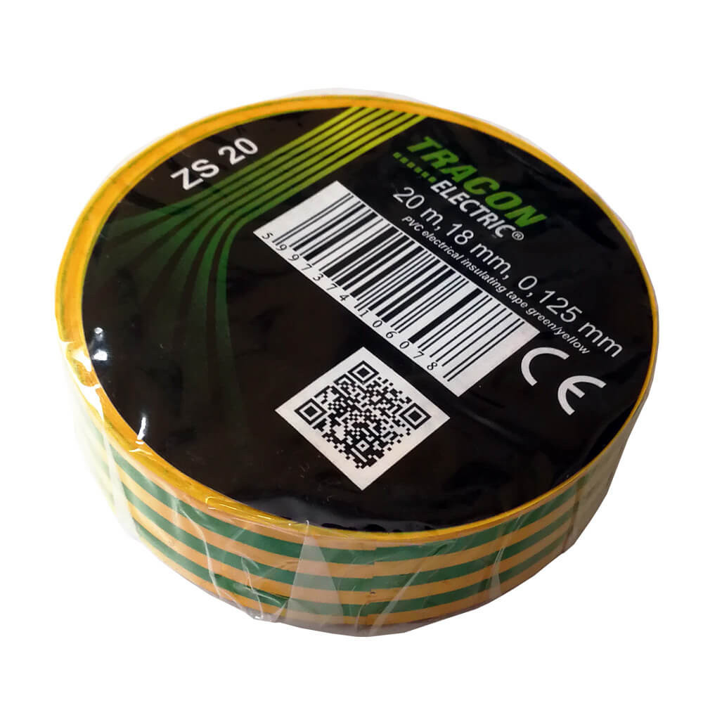 1 db szigetelőszalag, zöld-sárga színű, 20m/18mm