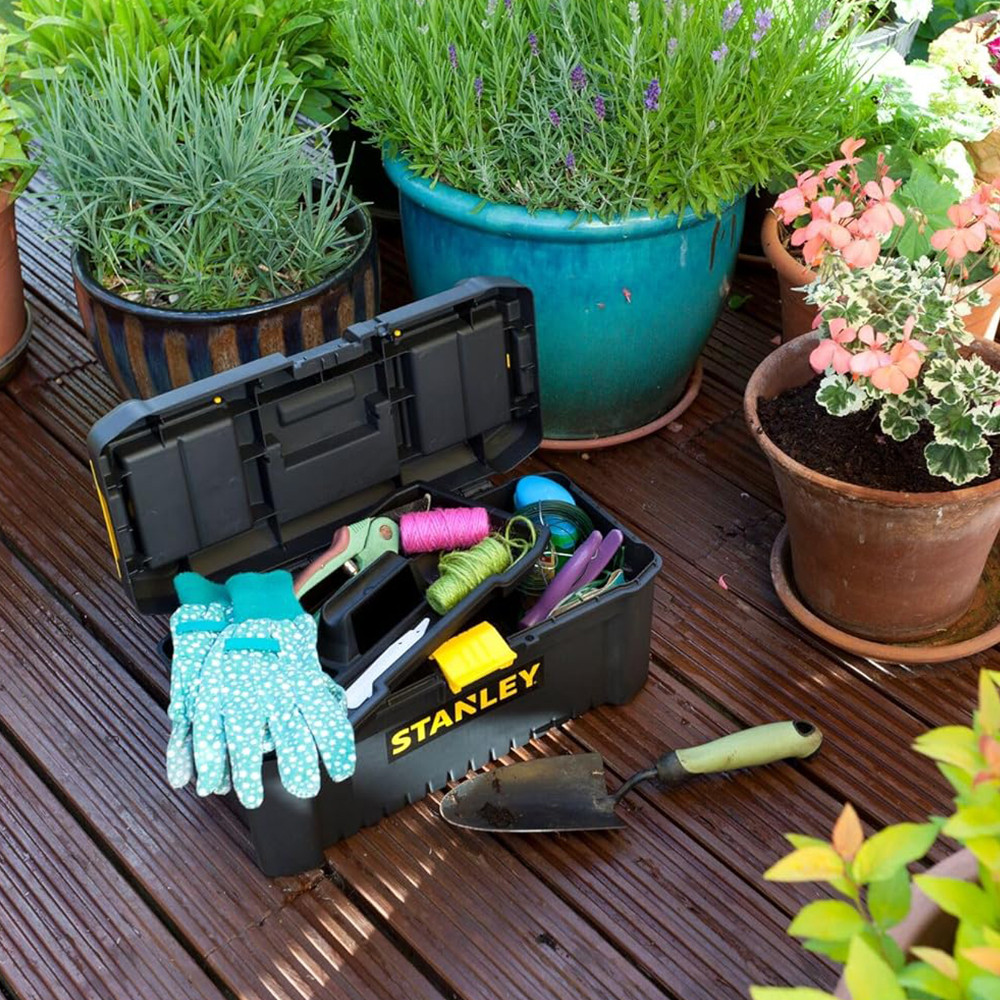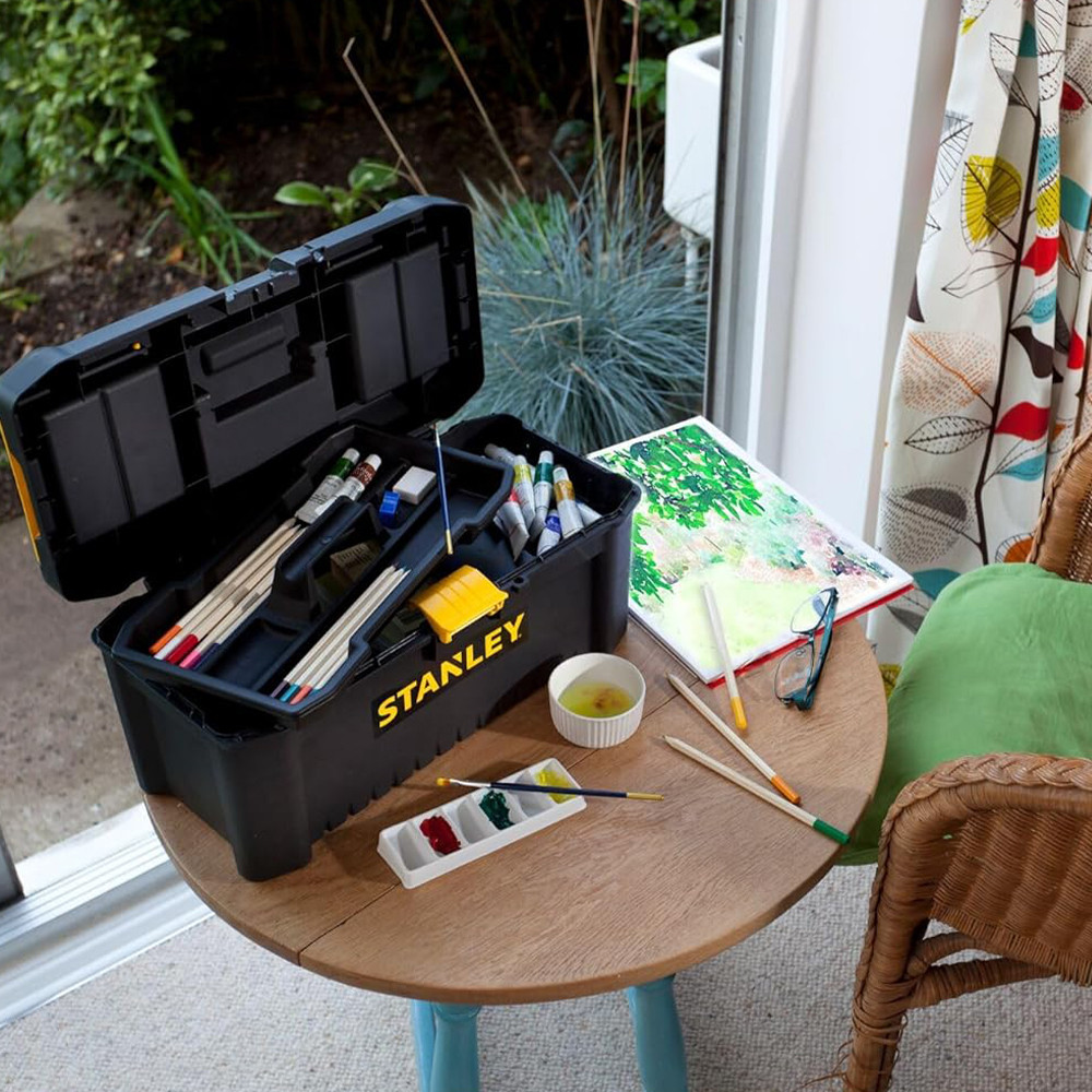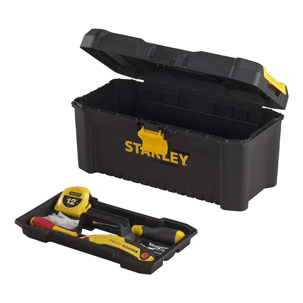 A STANLEY® 16 hüvelykes műanyag zárakkal ellátott szerszámosláda ideális a mindennapi szerszámok tárolására