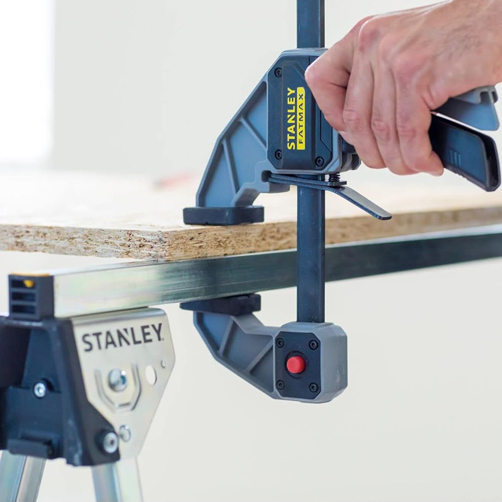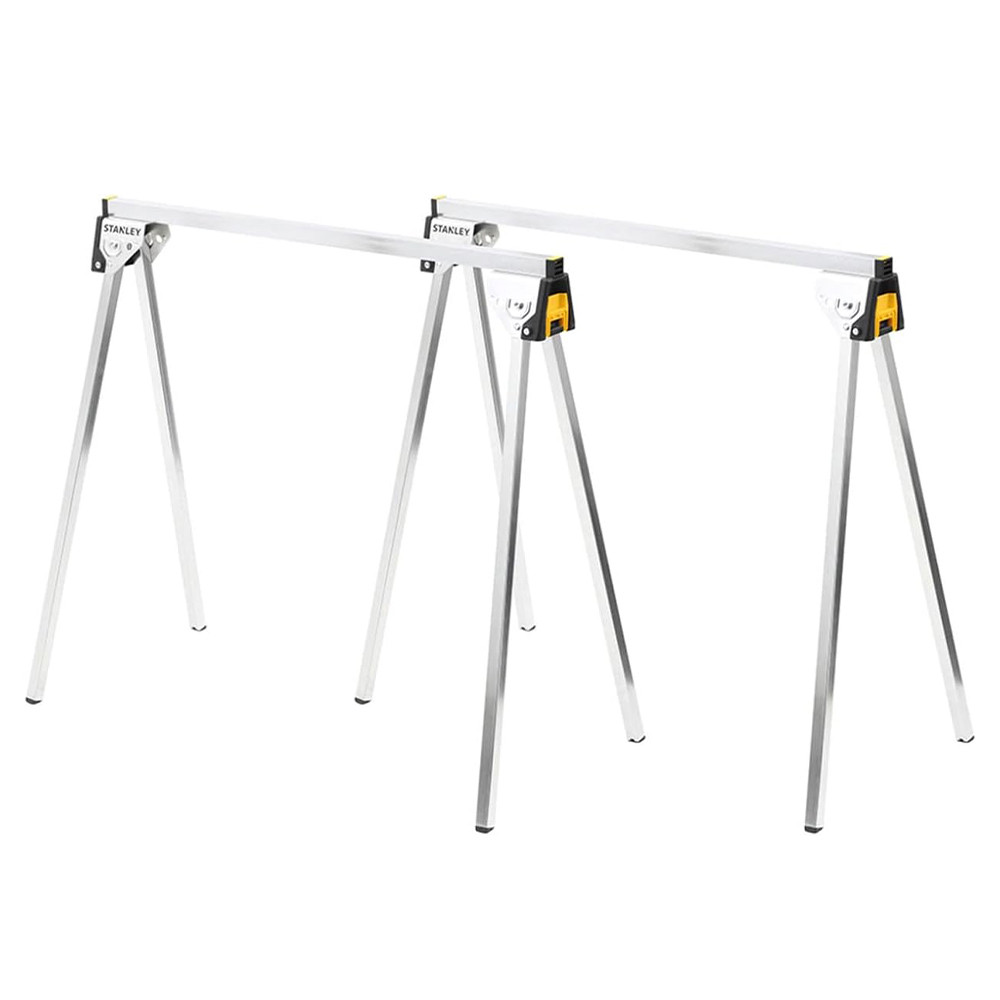 A STANLEY® összecsukható fém fűrészbak (pár) gyors és kényelmes ideiglenes munkapadot biztosít anyagok vágásához, vagy kényelmes sík felületet biztosít