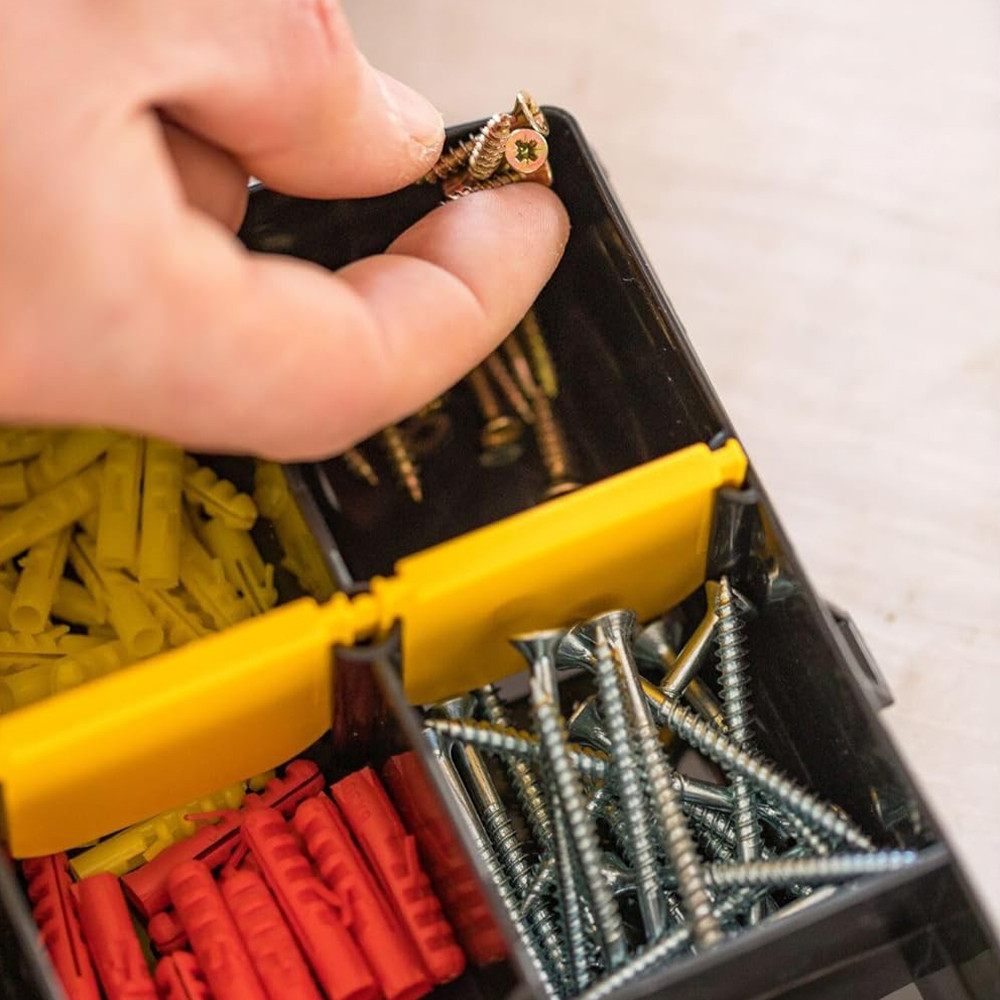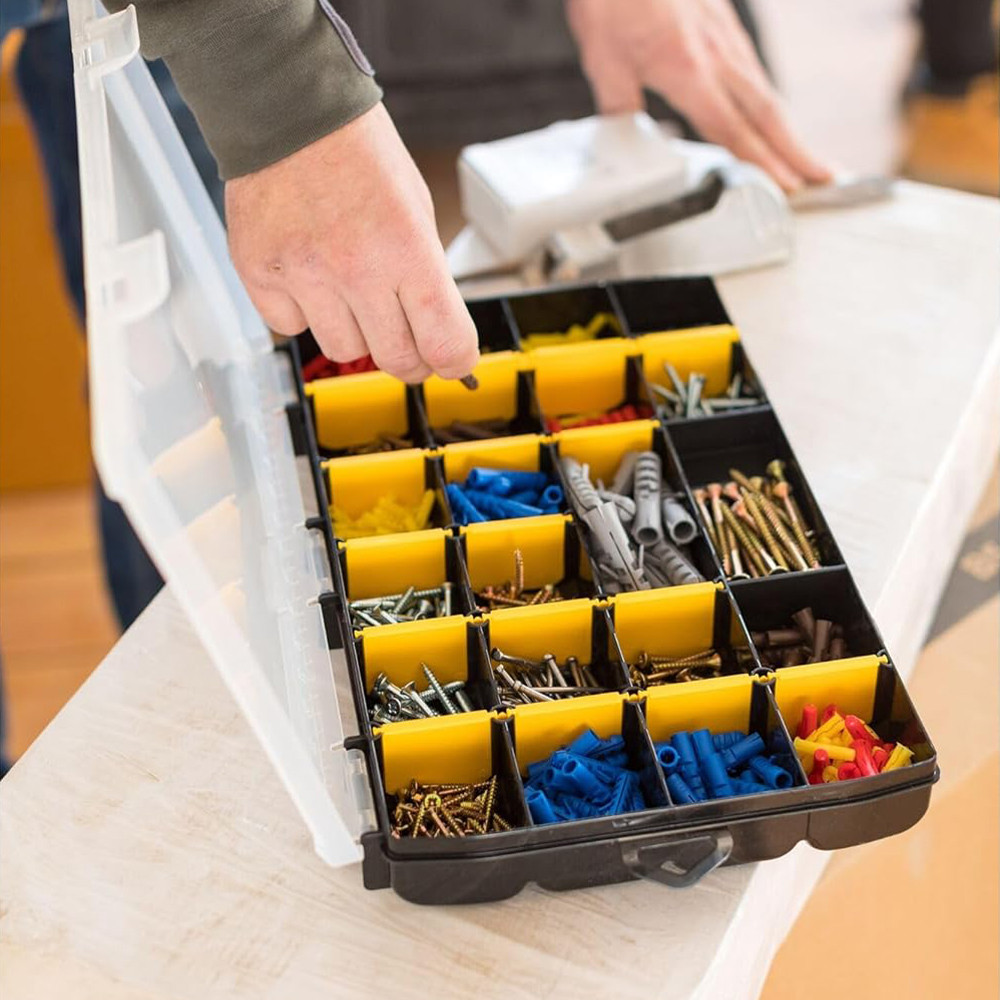 A kivehető elválasztók lehetővé teszik az igényeknek megfelelő testreszabást, és mivel a rekeszek szélei lekerekítettek, könnyebb a kisebb rögzítőelemek és kiegészítők eltávolítása