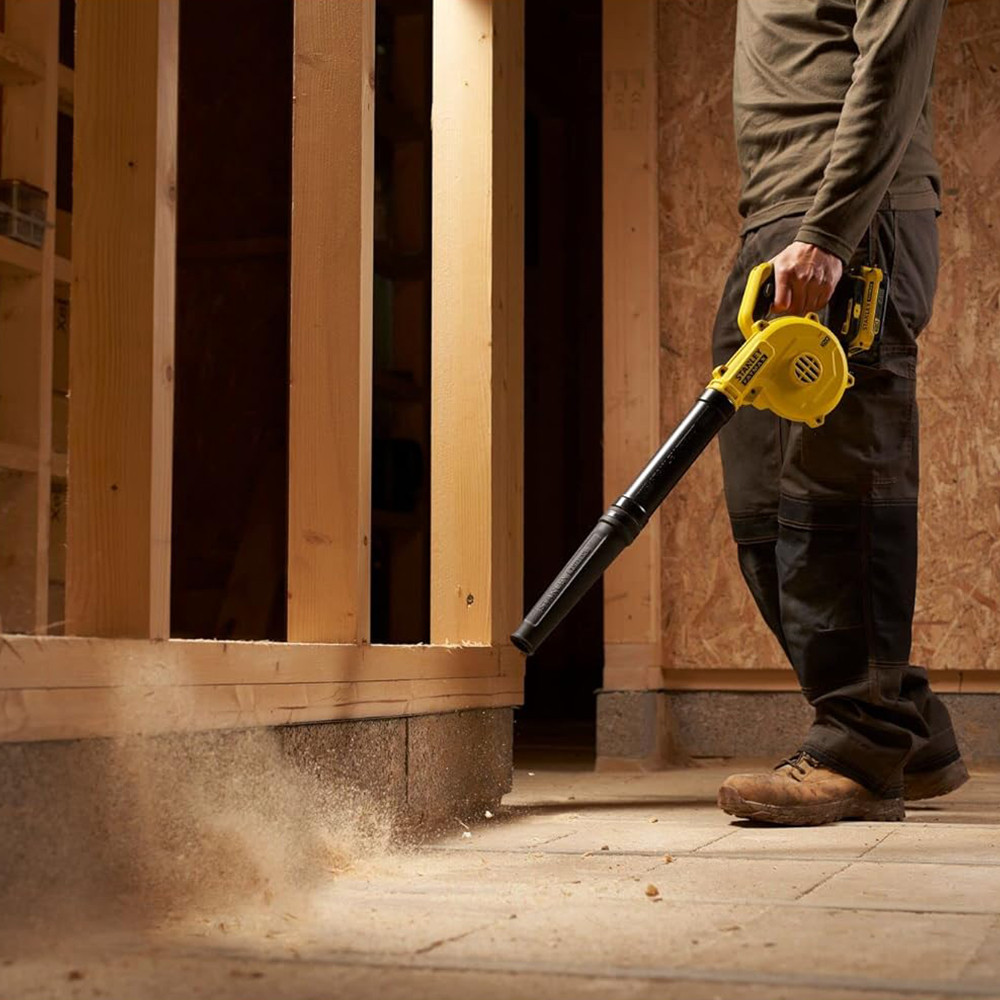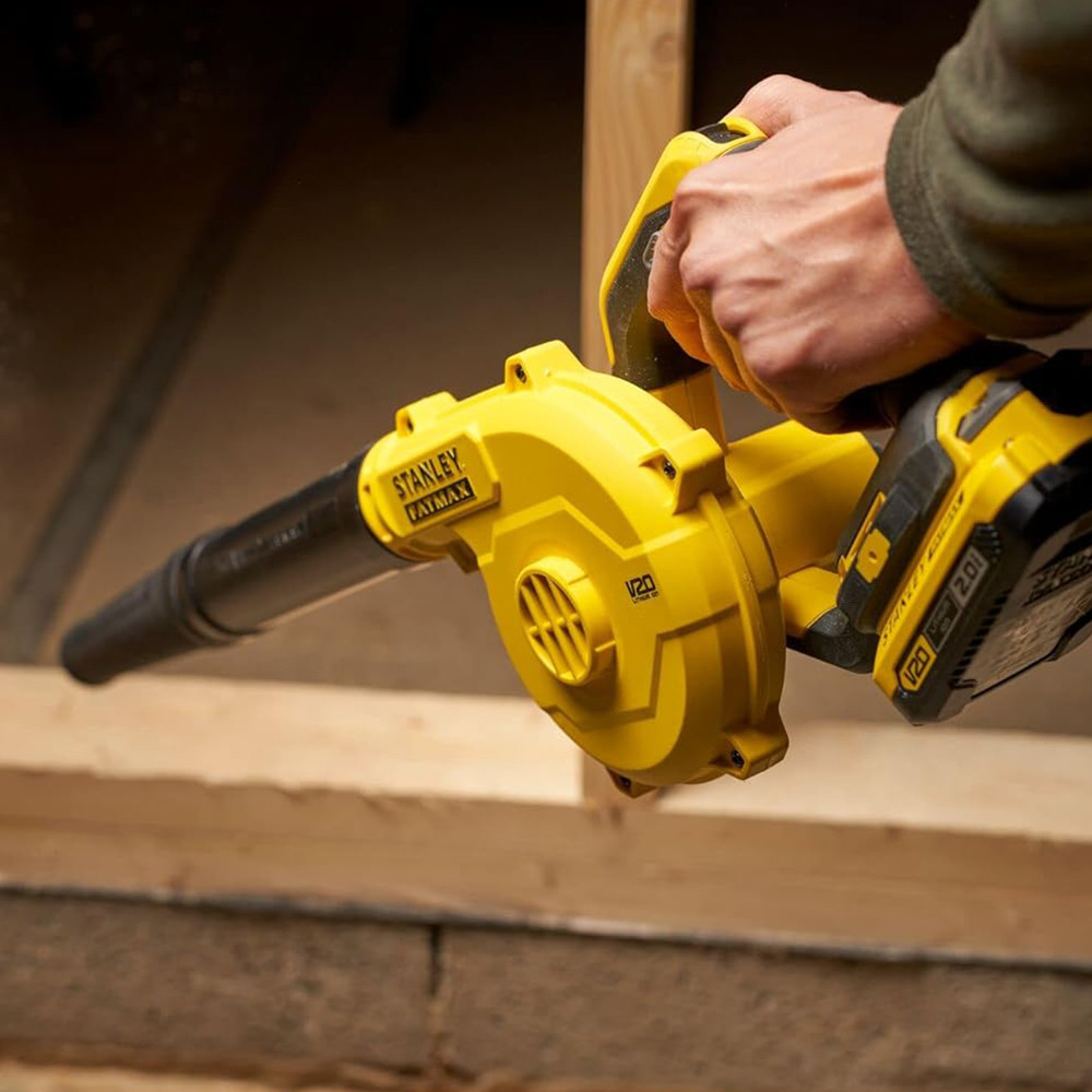 A STANLEY FATMAX V20 termékcsalád SFMCBL01B-XJ lombfúvója ideális eszköz építkezések és műhelyek tisztításához, szerszámok portalanításához, kültéri tisztításhoz és felfújáshoz