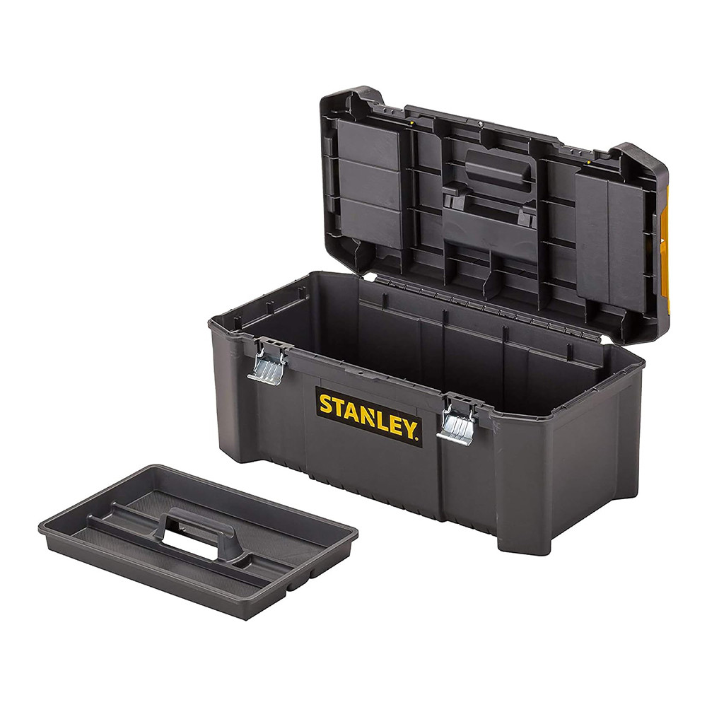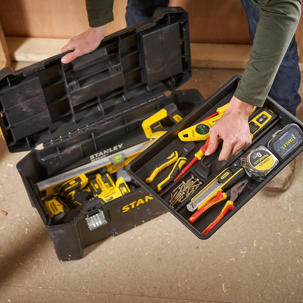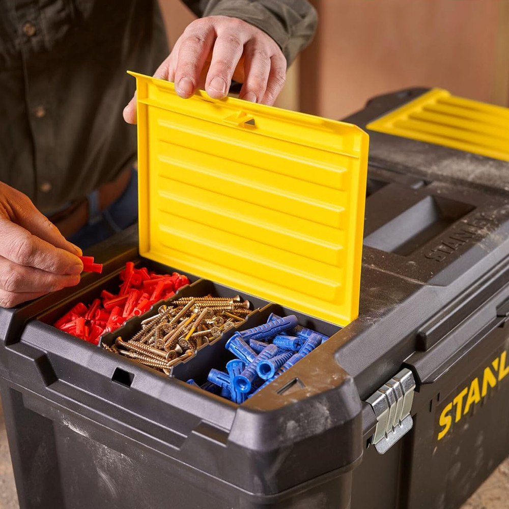 A STANLEY® 25 hüvelykes, fémzáras szerszámosláda ideális a mindennapi szerszámok tárolására