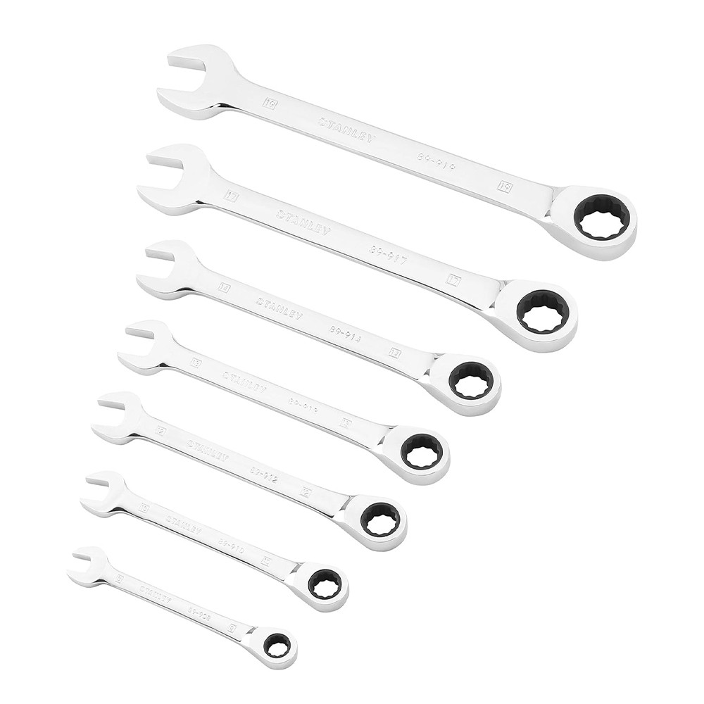 A STANLEY® 7 darabos racsnis villáskulcskészlet számos nagyszabású feladatot lefedjen