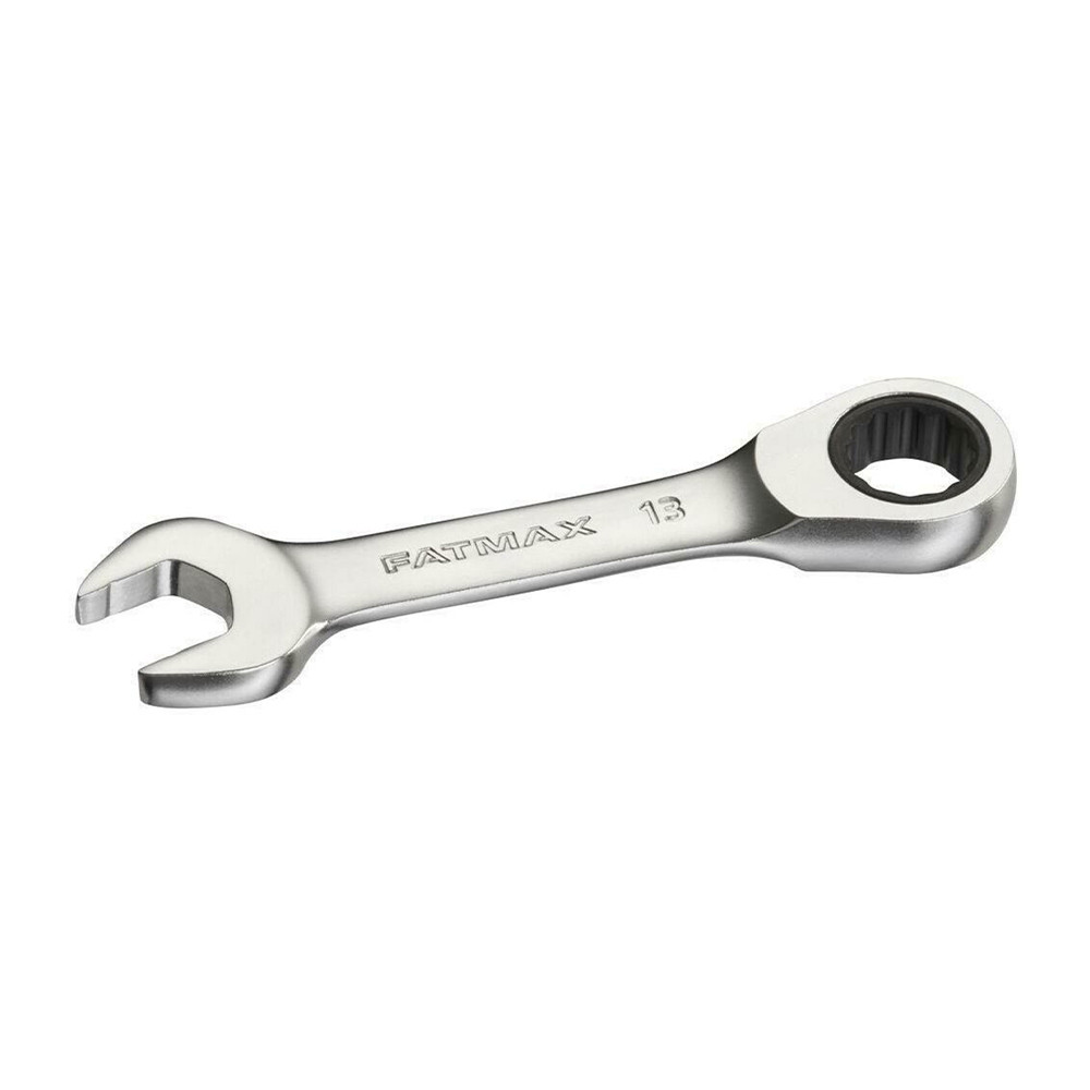 A korrózióálló króm-vanádium acélból kovácsolt, szatén króm bevonatú és csúszásgátló profilú STANLEY® FATMAX® Rövid racsnis villáskulcs